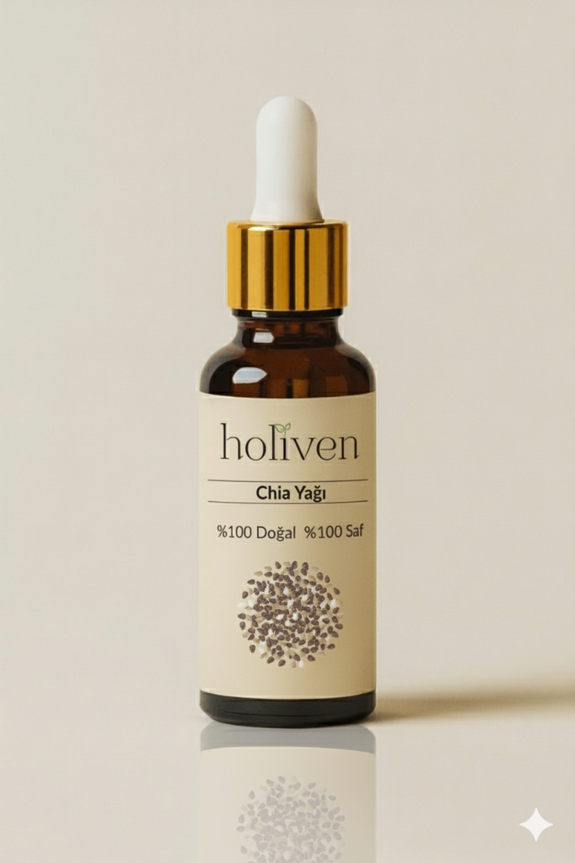 Holiven Chia Yağı %100 saf ve katkı maddesi içermez.
